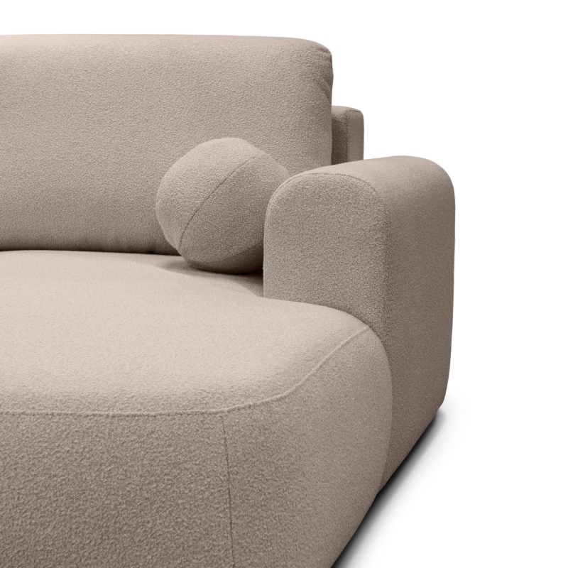 Siedzisko narożnika Ariola wypełnione jest wysokiej jakości pianką i sprężyną falistą, co gwarantuje wyjątkowy komfort użytkowania. Oparcie dopełniają niezwykle wygodne poduchy, które zachęcają do błogiego relaksu. Funkcjonalność to kolejny atut – narożnik posiada pojemnik na pościel oraz funkcję spania, które zapewniają dodatkowe miejsce zarówno do przechowywania jak i wypoczynku. Dzięki obiciu z tkaniny boucle, wyróżnia się on wyjątkową teksturą i subtelną elegancją, dodając wnętrzu charakteru i przytulności.