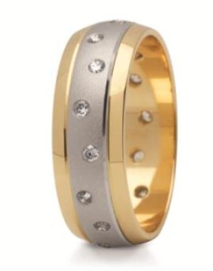 W damskiej obrączce oprawione standardowo cyrkonie w zależności od rozmiaru od 12 do 18 sztuk