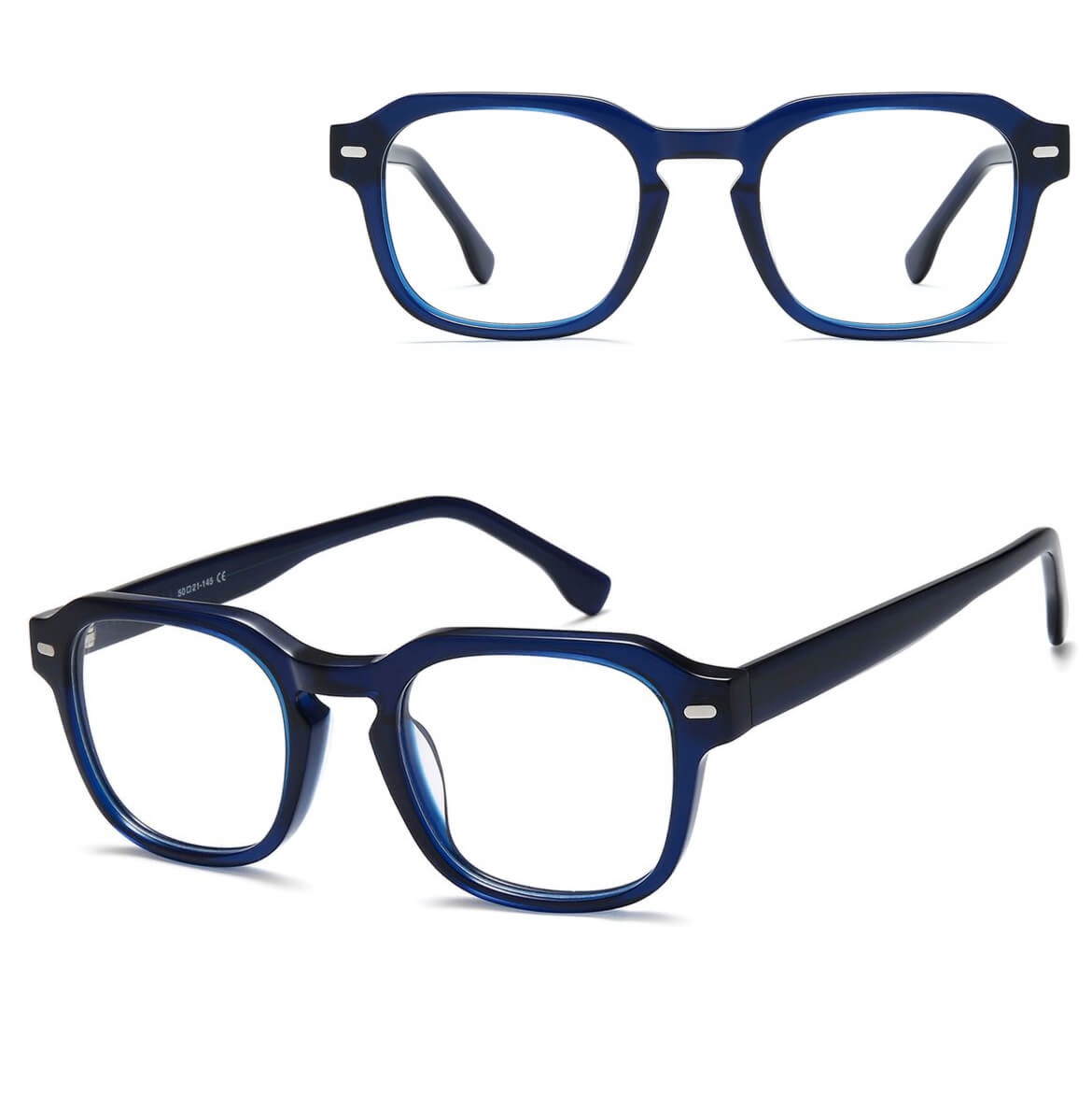 Okulary acetatowe oprawki korekcyjne zerówki kwadratowe AC380C granatowe