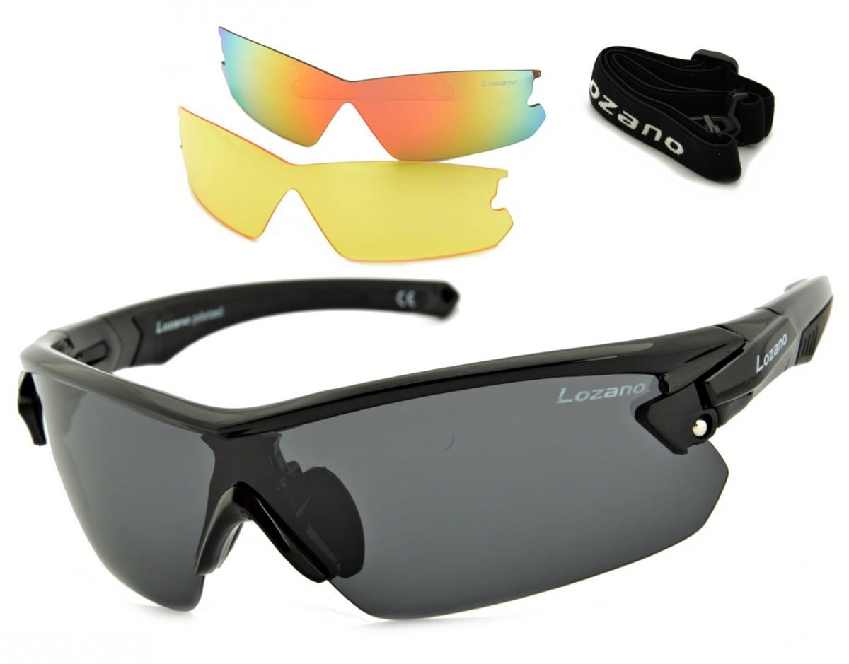 OKULARY LOZANO LZ-129A Czarna soczewka polaryzacyjna Dodatkowo 2 soczewki poliwęglanowe SZCZEGÓŁY:Producent: LOZANORodzaj: DAMSKIE, MĘSKIEKształt: SPORTOWEWłaściwości soczewek: POLARYZACYJNE, POLIWĘGLANOWEFiltr UV: UV 400Kategoria filtra: KAT. 3, KAT.1Kolor oprawki: CZARNA MATOWAKolor soczewki: CZARNA, LUSTRZANA (REVO POMARAŃCZOWA), ŻÓŁTA (ROZJAŚNIAJĄCA) Wymiary:szerokość między zausznikami (mierzona przy zawiasach) (cm): 13.5max wysokość soczewki razem z oprawką (cm): 4.4 SZKŁA POLARYZACYJNE 'TAC’ Trójwarstwowe utwardzone o grubości 1,1mm – Filtr polaryzacyjny pokryty jest trójoctanem celulozy (TAC) i dodatkowo chroniony specjalną warstwą tworzywa odpornego na ścieranie i pękanie. Soczewki te zapewniają 100% ochronę przed promieniowaniem UV oraz eliminują 99% odblasków świetlnych. Zapewniają idealną przezroczystość oraz pełny komfort widzenia. Dzięki warstwom ochronnym soczewki te zachowują stabilność, nie kurczą się i nie ulegają rozwarstwieniu.SOCZEWKI POLIWĘGLANOWE (żółte i revo) – gwarantują komfort widzenia, ochronę przed promieniowaniem ultrafioletowym, uderzeniami, lekkość i wygodę noszenia. Poliwęglan rozjaśnia i wyostrza obraz. Jego podstawowymi zaletami są: twardość, odporność na zarysowania oraz idealnie równa grubość płytki. GRILAMID TR 90 – wysokiej jakości odmiana nylonu, wyjątkowo odporna na rozciąganie i wyginanie. Materiał wytrzymały na uderzenia, elastyczny, przyjemny w dotyku, o właściwościach antyalergicznych. Okulary wykonane z grilamidu są lekkie, wytrzymałe i wygodne w użytkowaniu. GUMOWE NOSKI I WSTAWKI W ZAUSZNIKACH – zapobiegają ześlizgnięciu się ODCZEPIANE ZAUSZNIKI WYMIENNE NA ELASTYCZNY PASEK FILTR UV400 – cała seria wyposażona jest w filtry chroniące w 100% oczy przed szkodliwym promieniowaniem UVA i UVB WYMIENNE SZKŁO REVO – szkło poliwęglanowe z kolorową powłoką Revo WYMIENNE SZKŁO ŻÓŁTE ROZJAŚNIAJĄCE – szkło poliwęglanowe żółte KATEGORIE PRZYCIEMNIENIA SZKIEŁ: szkła przyciemnione (czarne, lustrzane): kat.3 – intensywne światło słoneczne – 8%-18%szkła rozjaśniające (żółte): kat.1 – mało intensywne światło słoneczne – 43%-80% Trwała oprawka, okulary spełniają normy europejskie potwierdzone znakiem CE. Dodatkowo otrzymujesz zupełnie za darmo 3 gratisy!!!1. markowe etui na okulary2. woreczek na okulary3. ściereczka