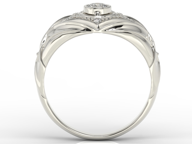 Śliczny pierścionek w kształcie konwalii, z oprawionym centralnie białym brylantem