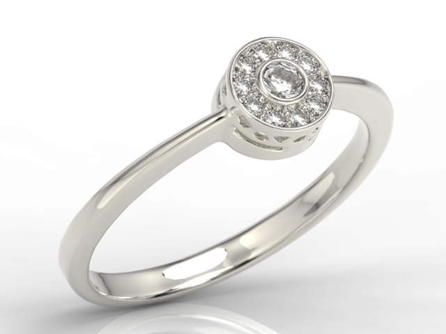 Śliczny pierścionek w kształcie konwalii, z oprawionym centralnie białym brylantem