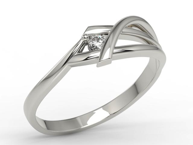 Śliczny pierścionek zaręczynowy w kształcie konwalii, z oprawionym centralnie białym brylantem