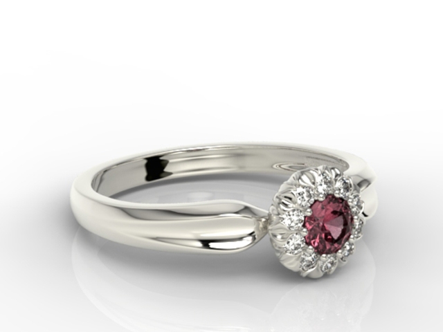 Elegancki i skromny pierścionek w kształcie markizy z centralnym okrągłym kamieniem i 10 małymi wokół.