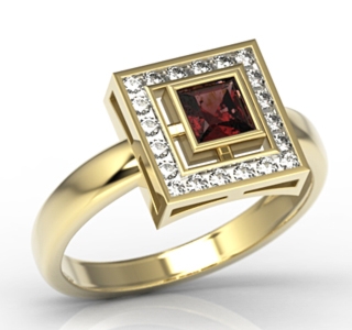 Śliczny pierścionek w kształcie konwalii, z oprawionym centralnie białym brylantem