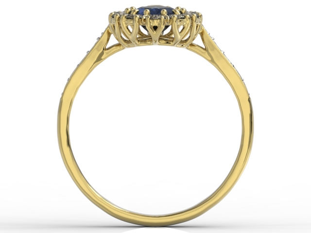 Elegancki i skromny pierścionek w kształcie markizy z centralnym okrągłym kamieniem i 10 małymi wokół