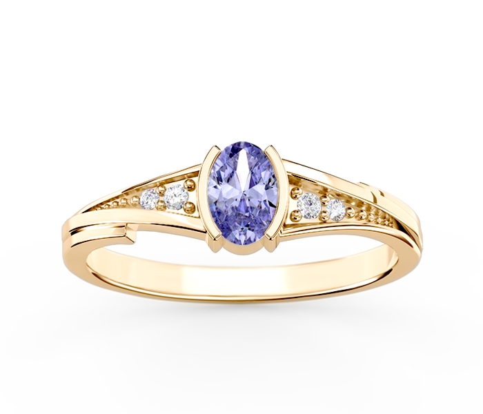 Pierścionek złoty z szafirem i diamentami