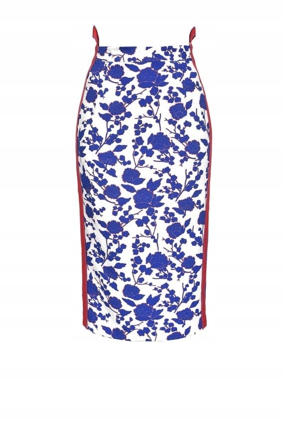 Zjawiskowa spódnica marki Pinko. Wykonana z najwyższej jakości włoskich materiałów zapewniających komfort podczas noszenia. Kwiatowy print przełamany został kontrastującymi lampasami w kolorze czerwonym. Z tyłu umieszczono subtelny rozporek.