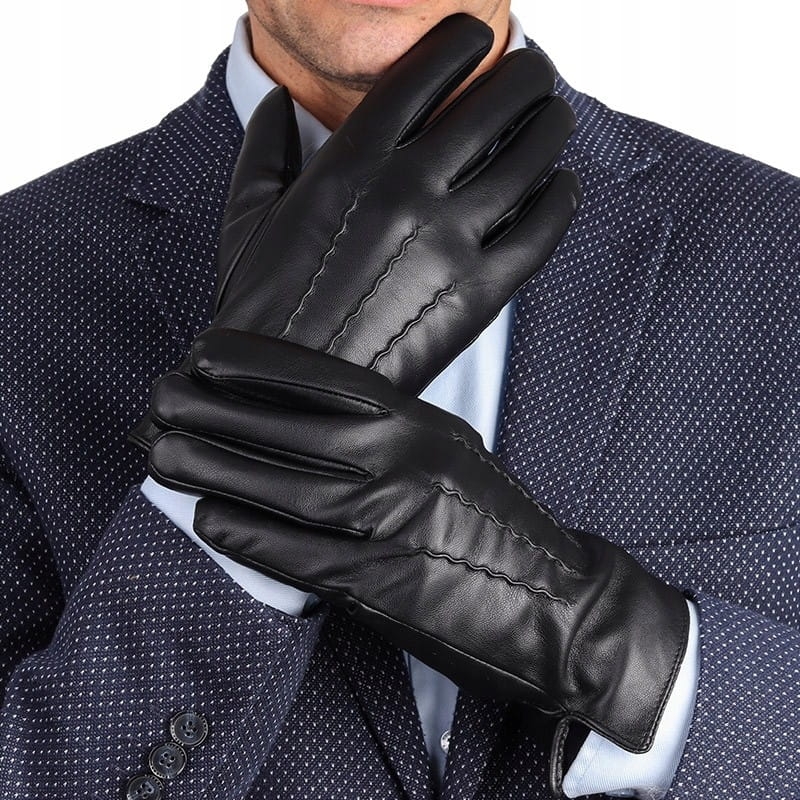 Klasyczne rękawiczki męskie w kolorze czarnym spełniające wszystkie oczekiwania mężczyzny, wybierającego zarówno elegancką, jak i casualową stylistykę.Wykończenie standardowe z trzema przeszyciami.Dzięki wewnętrznej podszewce 'na misiu’ rękawiczki zapewniają skuteczną ochronę nie tylko jesienią, ale także w mroźne, zimowe dni.W rękawicach można z łatwością obsługiwać urządzenia z ekranami dotykowymiProdukt w wykonany z eco skóry, materiał bardzo przyjemny w dotyku oraz rozciągliwy, co przekłada się na wytrzymałość rękawic.Rozmiar – MWymiary:długość: 25 cmszerokość: 10 cmdł. śr. palca: 9,0 cmRozmiar rękawic:M