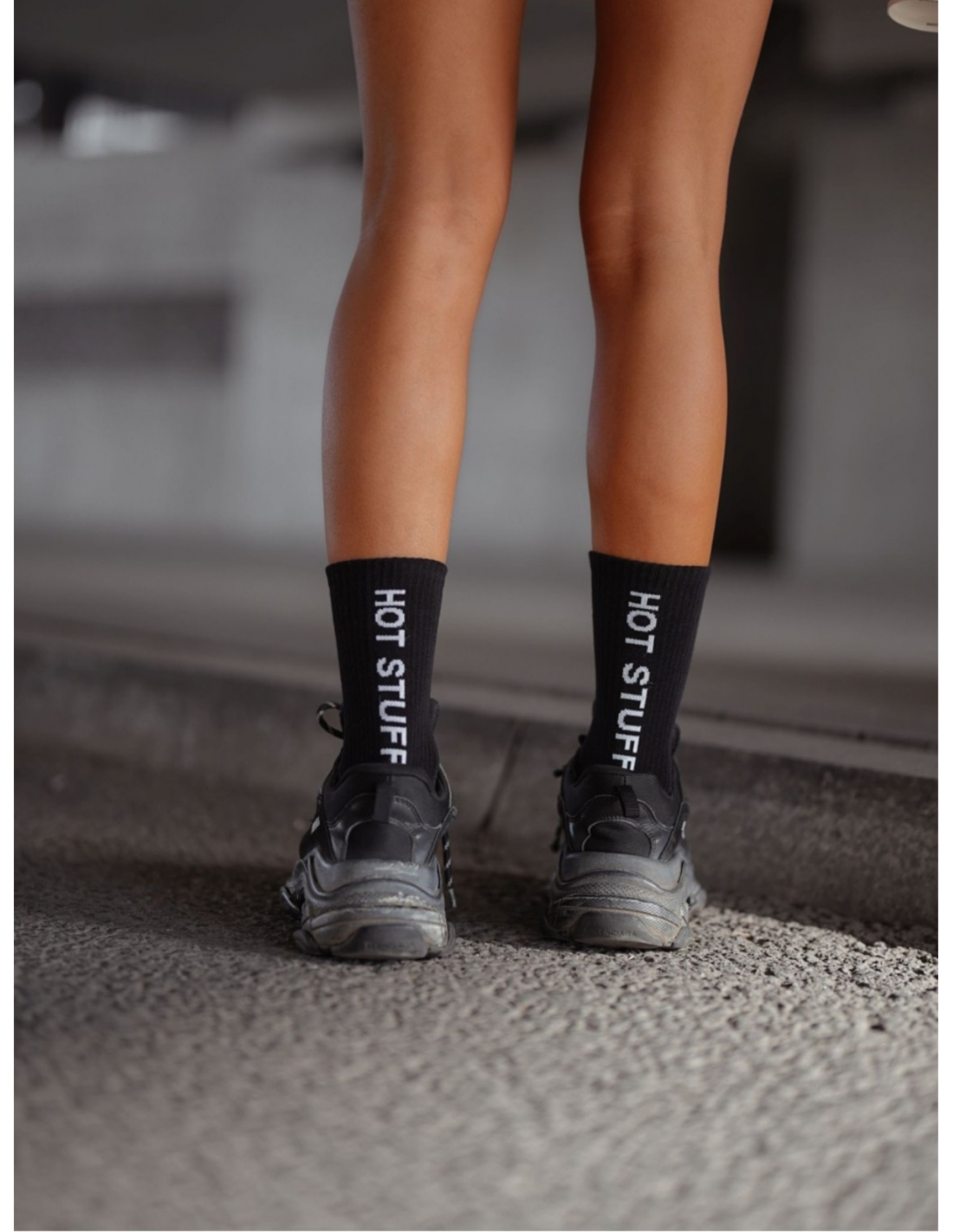 Skarpetki damskie HOT STUFF – czarne  Podkreśl swój styl z modnymi skarpetkami damskimi HOT STUFF w klasycznej czerni, które dodadzą każdej stylizacji charakteru. Wykonane z wysokiej jakości materiału, zapewniają komfort noszenia przez cały dzień, a wyrazisty napis „HOT STUFF” to odważny akcent, który przyciągnie uwagę. Idealnie sprawdzą się zarówno w codziennych, jak i sportowych stylizacjach, dodając im niebanalnego stylu. Skarpetki świetnie komponują się z obuwiem sportowym, botkami czy trampkami, tworząc efektowny i wyrazisty look. Elastyczne wykończenie gwarantuje idealne dopasowanie bez uciskania, co czyni je praktycznym wyborem na co dzień. Wybierz model HOT STUFF w kolorze czarnym, aby dodać swoim stylizacjom odważnego i modnego charakteru!