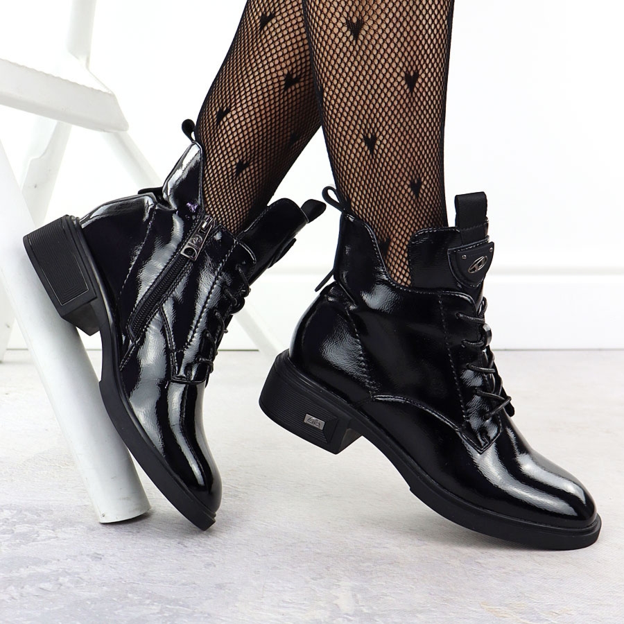 Skórzane lakierowane botki na klocku czarne Vinceza 26-39954