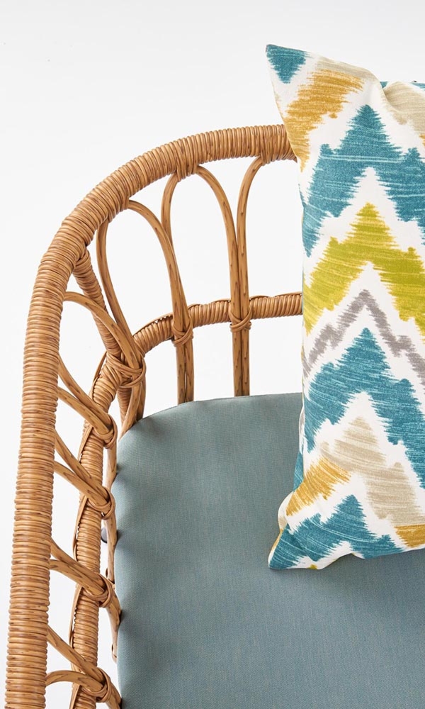 Sofa ogrodowa Gardena łączy elegancję z funkcjonalnością. Wykonana z odpornego na warunki atmosferyczne rattanu syntetycznego i stali, oferuje wygodę dzięki miękkim, wielobarwnym poduszkom. Idealna do wnętrz i na zewnątrz.