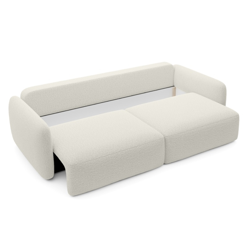 Zanurz się w komfortowym i stylowym wyposażeniu salonu dzięki sofie rozkładanej Botse, która doskonale wpisuje się w estetykę japandi. To niezwykle funkcjonalne i eleganckie rozwiązanie łączy minimalistyczny design z harmonią prostych form, tworząc przestrzeń pełną ciepła i spokoju. Sofa Botse zapewnia zarówno wygodne siedzenie, jak i doskonałe miejsce do spania dla Twoich gości, dzięki czemu jest idealnym wyborem do każdego wnętrza.Botse wyróżnia się obiciem z delikatnej tkaniny boucle, co zapewnia nie tylko przyjemny dotyk, ale również wyjątkową atmosferę w Twoim salonie. Duża powierzchnia spania gwarantuje komfortowy sen, zapewniając idealne rozwiązanie dla niespodziewanych gości. Dzięki systemowi rozkładania DL, zmiana sofy w łóżko jest niezwykle łatwa i szybka. Pojemnik na pościel, dyskretnie umieszczony pod siedziskiem, umożliwia przechowywanie pościeli i dodatkowych kołder, co sprawia, że Twoje miejsce jest zawsze schludne i uporządkowane. Miękkie poduszki kulki nie tylko uzupełniają wygląd sofy, ale także zapewniają dodatkowe wsparcie dla Twojej wygody. Zaokrąglone kształty sofy Botse nadają jej nowoczesny i elegancki wygląd, który doskonale komponuje się z różnymi stylami aranżacji wnętrz.
