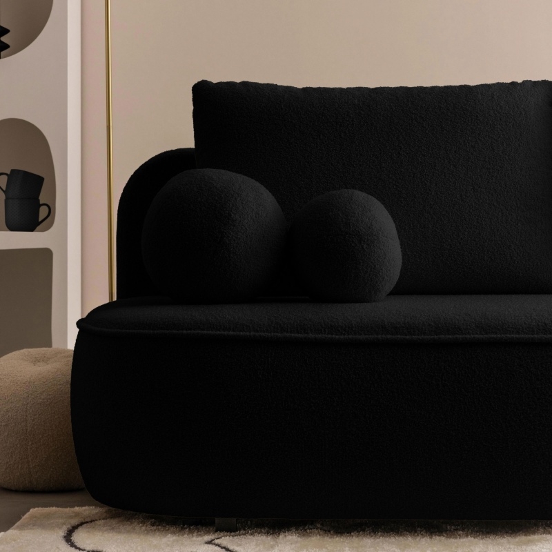 Wyjątkowy design sofy Bella zaskoczy Cię swoim zaokrąglonym kształtem, który wprowadzi do Twojego wnętrza delikatność i harmonię.Sofa Bella to marzenie każdego, kto pragnie relaksu na najwyższym poziomie. Jej funkcja rozkładania pozwoli Ci w pełni wykorzystać przestrzeń i dostosować ją do swoich potrzeb. Bez względu na to, czy pragniesz odpocząć po ciężkim dniu czy komfortowo ugościć bliskich, Bella stanie na wysokości zadania. To jednak nie wszystko, czym Bella może Cię oczarować. Jej praktyczny pojemnik na pościel pozwoli Ci zaoszczędzić miejsce i utrzymać porządek w Twoim salonie. Teraz możesz przechowywać pościel i inne niezbędne rzeczy w zasięgu ręki, niezauważalnie schowane wewnątrz sofy.Materiałem obicia jest miękka i przyjemna w dotyku tkanina typu boucle, której wyjątkowy urok wprowadzi do wnętrza odrobinę elegancji. Ponadto materiał ten powstał z przędzy wyprodukowanej z recyklingowanych tworzyw, co przyczynia się do ochrony naszego wspólnego środowiska.