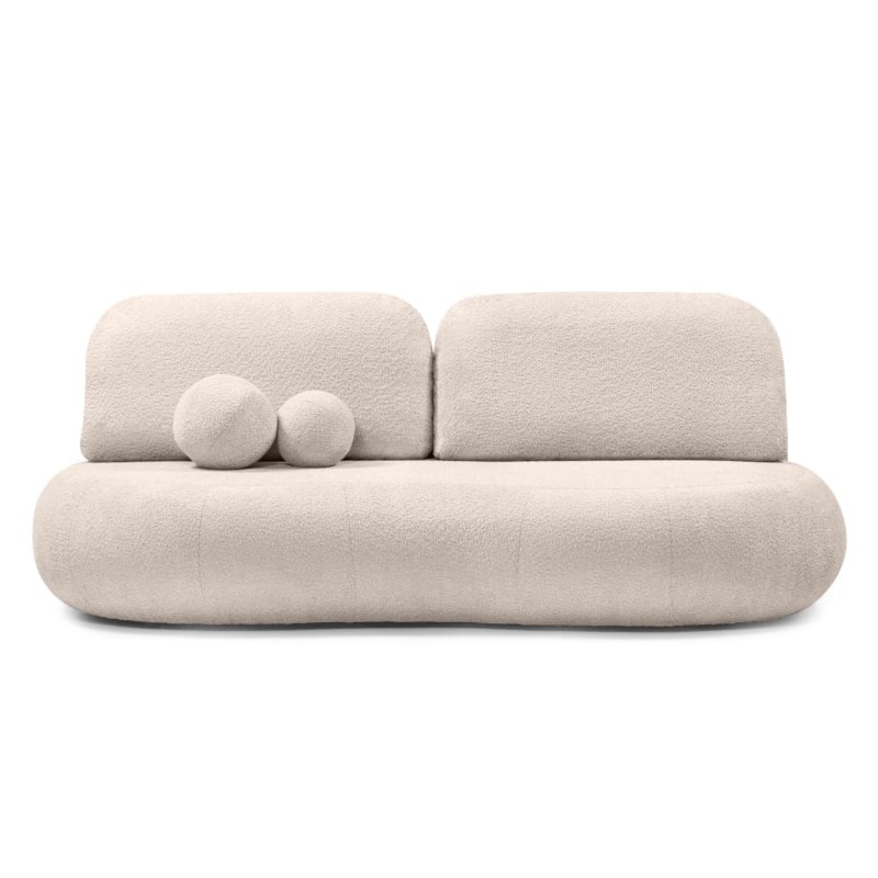Sofa Dolce emanuje delikatnością dzięki swoim zaokrąglonym kształtom, które nadają wnętrzu harmonijnego charakteru. Jej nowoczesny design doskonale komponuje się z każdym wnętrzem, zapewniając przytulne miejsce do codziennego odpoczynku. Dodatkowo, miękka tkanina boucle nie tylko zachwyca swoim wyglądem, ale także zwiększa komfort użytkowania.
