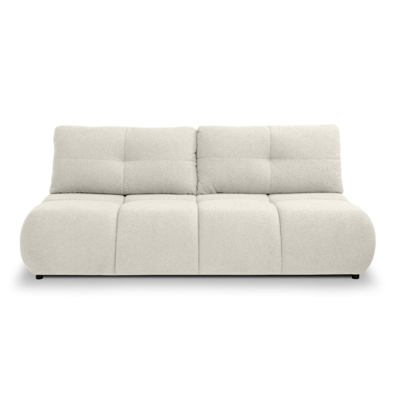 Sofa z funkcją spania i pojemnikiem Milo, jasnobeżowa, boucle, obłe kształty