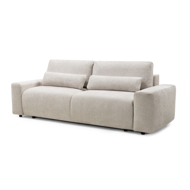 A gdy tylko najdzie Cię ochota na drzemkę lub niespodziewani goście zostaną na noc, sofa Mochi w mgnieniu oka zamieni się w komfortowe łóżko. Nowoczesny i intuicyjny mechanizm rozkładania automat DL sprawia, że wystarczy lekkie uniesienie siedziska i przesunięcie go do przodu. Bez trudu stworzysz przestronną powierzchnię do spania. Praktycznym atutem sofy Mochi jest również wbudowany pojemnik na pościel. Dzięki niemu z łatwością przechowasz koce, poduszki czy dodatkowy komplet pościeli, utrzymując porządek w swoim salonie.