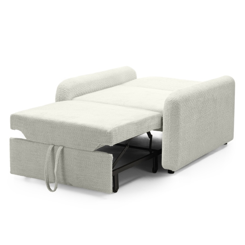 Sofa z funkcją spania Luno, kremowa, boucle, obłe kształty