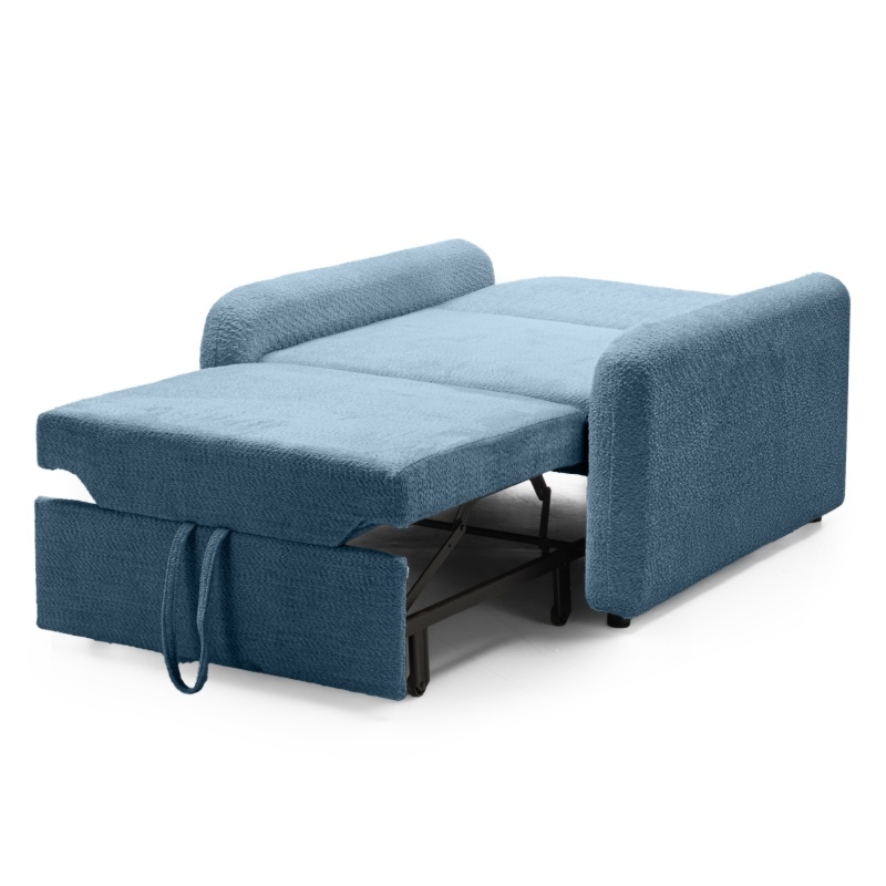 Sofa z funkcją spania Luno, niebieska, boucle, obłe kształty