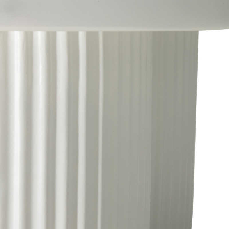 Stolik kawowy Salerno to nie tylko funkcjonalne rozwiązanie do Twojego salonu, ale również prawdziwa ozdoba wnętrza, która wyróżnia się elegancją i solidnością.Biała konstrukcja w matowym wykończeniu nadaje mu wyjątkowego charakteru, a okrągły blat tworzy idealną powierzchnię do serwowania napojów i przekąsek. Solidna podstawa stolika, ozdobiona dekoracyjnym ryflowaniem nie tylko dodaje mu uroku, ale również zapewnia stabilność i wytrzymałość. Całość wykonana jest z trwałego włókna szklanego, odpornego na uszkodzenia mechaniczne, zarysowania i ścieranie.