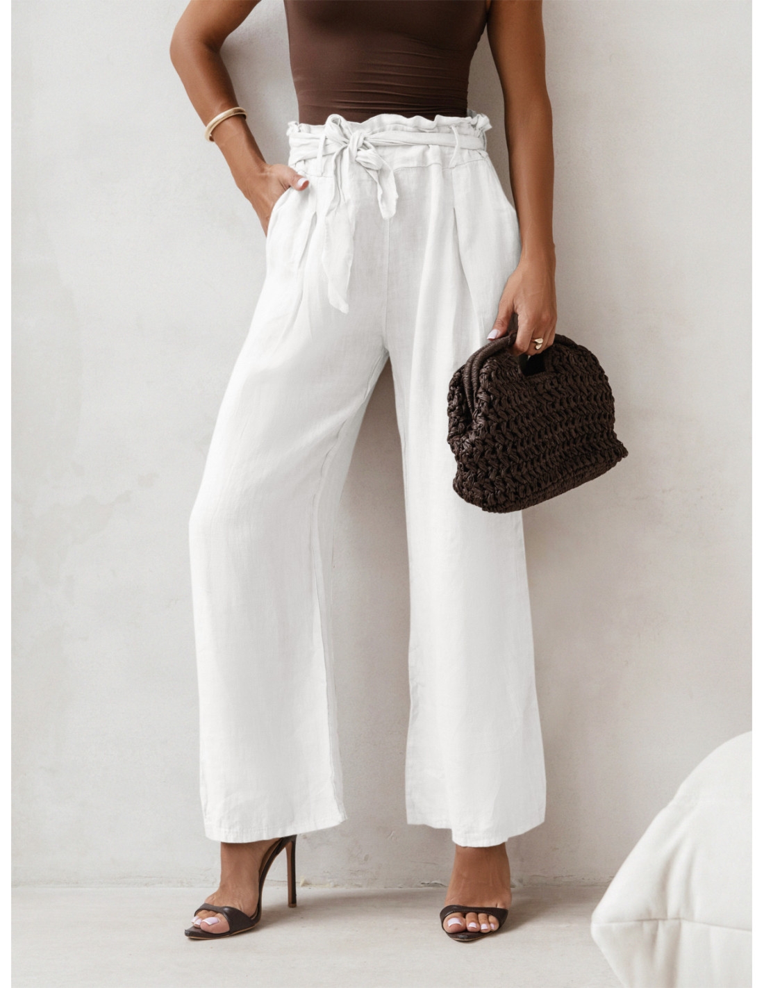 Stylowe lniane spodnie z paskiem ASKAR – białe