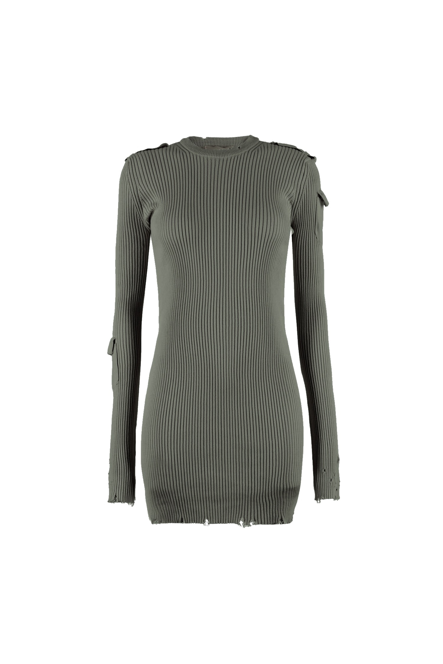 „Roxy” Aniye By mini sukienka z prążkowanego materiału.  To model, który stanowi świetną bazę dla wielu stylizacji. Pasują do niej zarówno sneakersy, szpilki, jak też ciężkie bikery. Materiał ma prążkowaną fakturę. Długie rękawy mają po bokach małe kieszenie. Okrągły dekolt pod szyję. Kolor i detale nadają sukience nieco militarnego charakteru. Na krawędziach znajdują się niewielkie przetarcia. Aniye By to włoski brand premium o charakterystycznym stylu, który łączy klasykę z najnowszymi trendami.