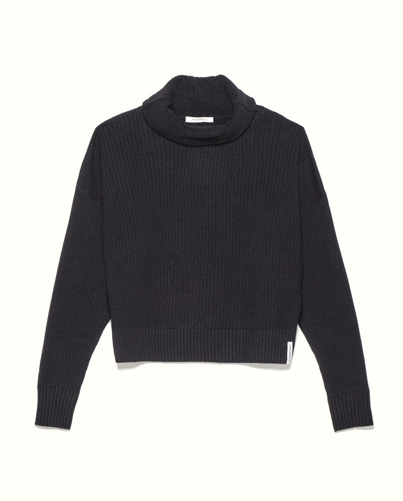 Hinnominate sweter z golfem z prążkowanej dzianiny. Golf jest luźny i delikatnie opada na dół. Czarny kolor jest uniwersalny, więc stworzysz z nim niezliczoną ilość stylizacji. Krój typu regular fit. Długie rękawy i dół i wykończone są ściągaczami. Długość do bioder. Dzianina ma prążkowaną fakturę. Marka, która główną siedzibę ma Argentynie tworzy kolekcje loungewear w wersji premium. Są doskonałą bazą codziennych looków. To zakup, który przy odpowiedniej pielęgnacji przetrwa w doskonałym stanie przez długi czas.