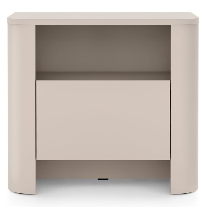 Zacznij i skończ każdy dzień w otoczeniu, które sprzyja relaksowi i wyciszeniu. Szafka nocna Bari to Twój mały, osobisty asystent, który czuwa nad Twoim komfortem. Jej zaokrąglone krawędzie dodają jej lekkości i sprawiają, że nawet w niewielkiej sypialni prezentuje się subtelnie. To idealny mebel, by odłożyć książkę, telefon lub postawić filiżankę ulubionej herbaty przed snem.