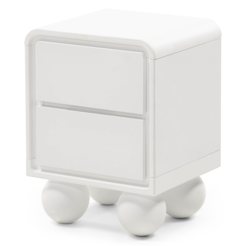 Wprowadź do swojej sypialni niepowtarzalny urok i funkcjonalność z naszą szafką nocną Lauria. To nie tylko praktyczny mebel, ale także wyraz nowoczesnego stylu, który wprowadzi do Twojej przestrzeni relaksujący i elegancki nastrój.Szafka nocna Lauria to solidnie wykonany mebel z płyty MDF i melaminy w kolorze czystej bieli, nadający pomieszczeniu świeży, nowoczesny wygląd. Jej delikatne zaokrąglone krawędzie, obłe kształty i nóżki kulki dodają subtelnego uroku, idealnie komponując się z różnymi aranżacjami i nadając wnętrzu przytulności. Dwie pojemne szuflady to doskonałe miejsce na przechowywanie najpotrzebniejszych rzeczy w zasięgu ręki. Bezproblemowy dostęp do przedmiotów sprawi, że poranne i wieczorne rytuały staną się jeszcze przyjemniejsze.