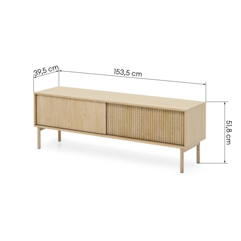 Szafka RTV 153 cm Tavo, dwudrzwiowa, Dąb Cremona, ryflowana