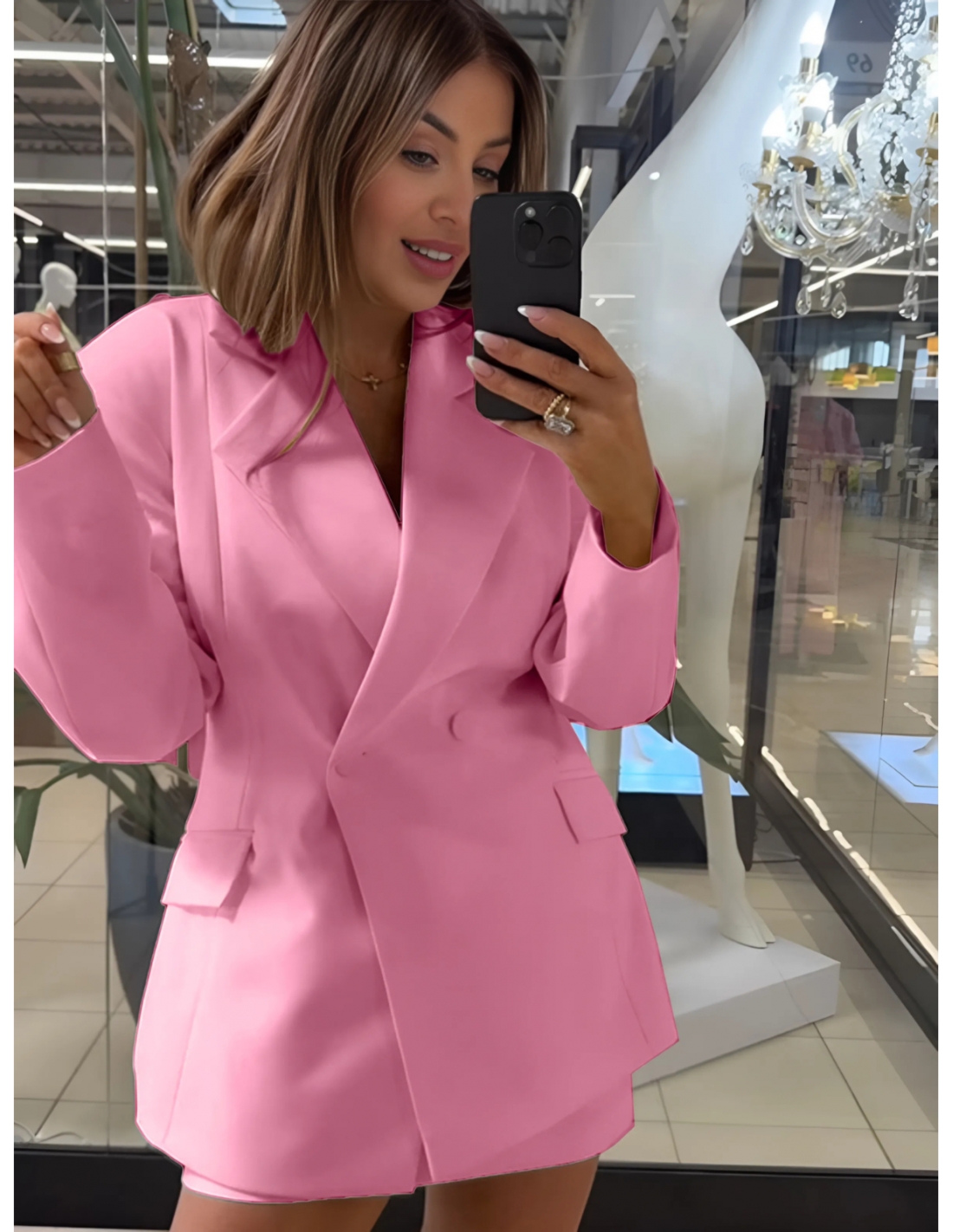 Taliowana marynarka z guzikami ALVANA – różowa Ta długa, taliowana marynarka w cukierkowym odcieniu różu to kwintesencja klasy i wyrafinowanego stylu! Wykonana z wysokiej jakości materiału z domieszką wiskozy, zapewnia nie tylko perfekcyjny wygląd, ale też komfort noszenia przez cały dzień. Zapięcie na guziki oraz dopracowany fason pięknie podkreślają talię i modelują sylwetkę. Podszewka sprawia, że marynarka świetnie układa się na ciele i doskonale sprawdzi się nawet w bardziej formalnych stylizacjach. To ponadczasowy element garderoby, który z łatwością dopasujesz do wielu okazji. Na co dzień noś ją z jeansami i t-shirtem dla szykownego miejskiego looku. Na wieczór — połącz z mini spódnicą, szpilkami i złotą biżuterią, tak jak na zdjęciu, by stworzyć oszałamiającą stylizację z nutą glamour. Różowa marynarka doda Ci pewności siebie i przyciągnie spojrzenia gdziekolwiek się pojawisz!