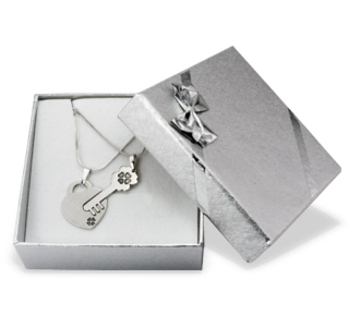 Eleganckie serce ze srebra pr. 0,925 z wyciętym wewnątrz kluczem stanowią komplet wisiorków.