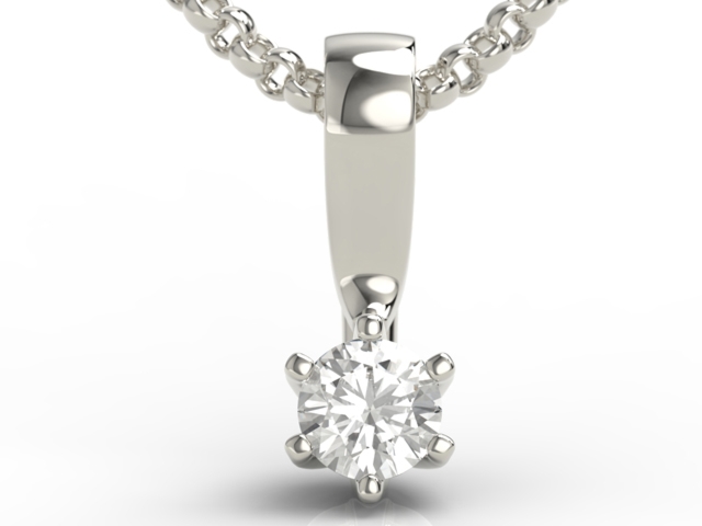 Brylant o masie 0,27 karata wieńczący klasycznie stylową ozdobę z białego złota próby 0,585 dominuje w tej olśniewającej, lecz subtelnej kompozycji. Esencja elegancji połączona z nieprzemijającym pięknem szlachetnego kamienia.