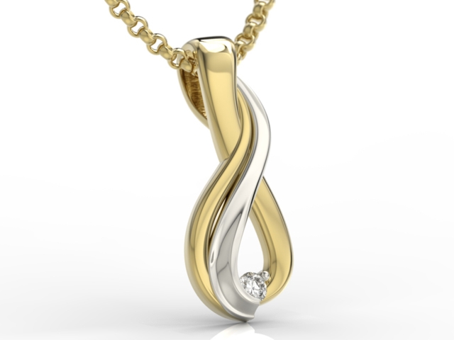 Diament o masie 0,04 karata harmonijnie łączy sploty tego tajemniczego wisiorka, wykonanego z żółtego i białego złota o próbie 0,585. Nawiązująca kształtem do symbolu nieskończoności kompozycja to esencja piękna i stylu.