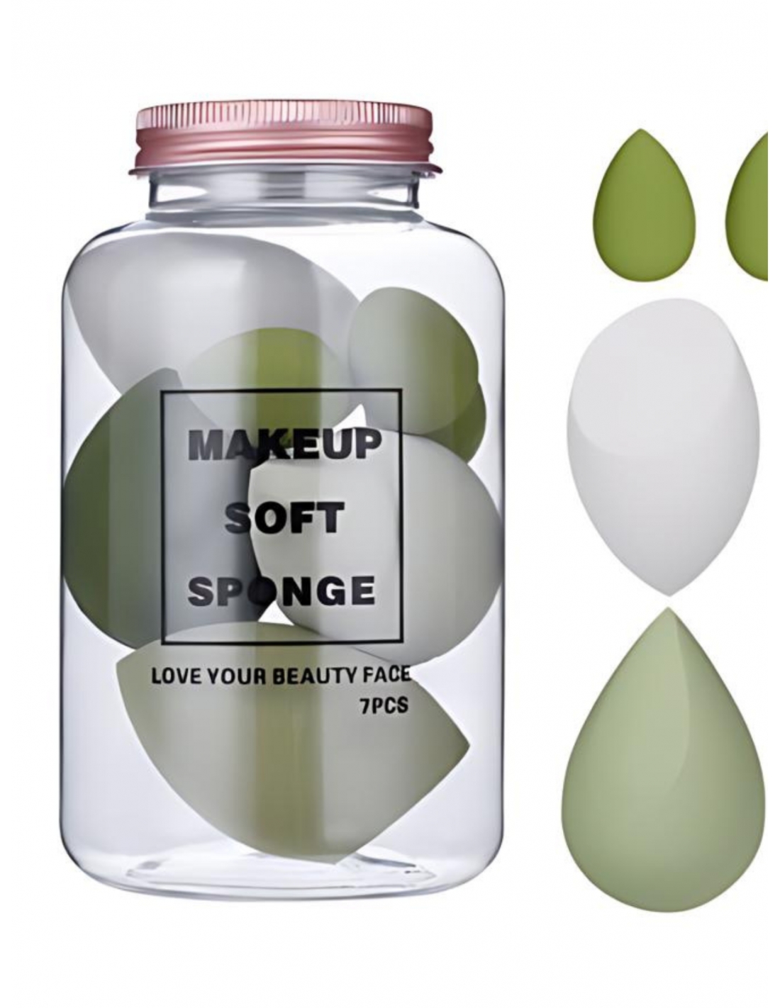 Zestaw 7 gąbeczek do makijażu – wzór 4 Zainwestuj w idealny zestaw 7 gąbeczek do makijażu CREAMY RED DUO, który zapewni Ci perfekcyjnie nałożony makijaż każdego dnia. Gąbeczki o różnych kształtach i rozmiarach doskonale sprawdzą się do aplikacji podkładu, korektora czy różu, umożliwiając precyzyjne wykończenie. Miękka, aksamitna struktura zapewnia równomierne rozprowadzanie kosmetyków bez smug. Zestaw jest zapakowany w estetyczny, przezroczysty słoik, co ułatwia przechowywanie i utrzymanie porządku na toaletce. Dzięki różnym odcieniom zieleni koloru, gąbeczki nie tylko są praktyczne, ale i stylowe. To idealny wybór zarówno dla profesjonalistów, jak i do codziennego użytku. UWAGA: Przed użyciem gąbeczki – należy ją zwilżyć letnią wodą, a następnie odcisnąć nadmiar. Gąbeczka jest wielokrotnego użytku, należy ją czyścić po każdym użyciu.
